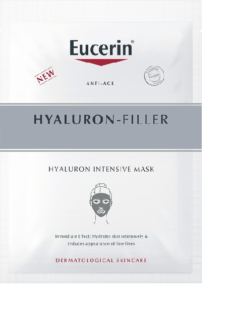 Eucerin Hyaluron-Filler Intensive Mask on ihoa intensiivisesti kosteuttava ja juonteita vähentävä kasvonaamio. Suurimolekyylinen hyaluronihappo vaikuttaa ihon pintakerroksissa ja pienimolekyylinen hyaluronihappo imeytyy syvemmälle ihon kerroksiin ja vaikuttaa siellä, missä suurimmat juonteet muodostuvat. Ekologinen kangasnaamio on valmistettu bioselluloosasta, joka on luonnossa syntyvä biohajoava materiaali. Kevyt, miellyttävä tuoksu. Jättää ihon raikkaan ja viielän tuntuiseksi. Ei tuki ihohuokosia.