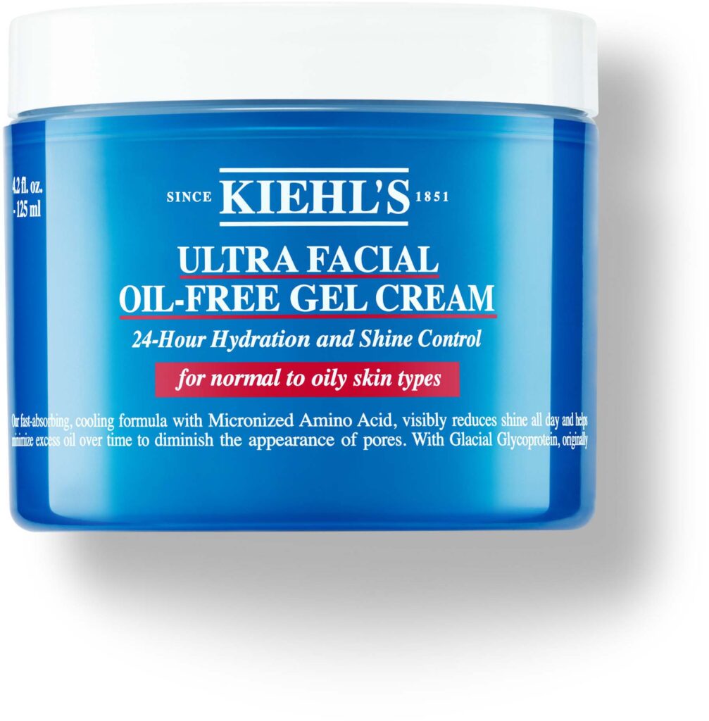 - Kiehl’s Ultra Facial Oil-free Gel Cream 125 ml: Nopeasti imeytyvä koostumus tunkeutuu välittömästi ihoon ja auttaa pitkäaikaisella käytöllä vähentämään näkyviä ihohuokosia ja rasvaisuutta.